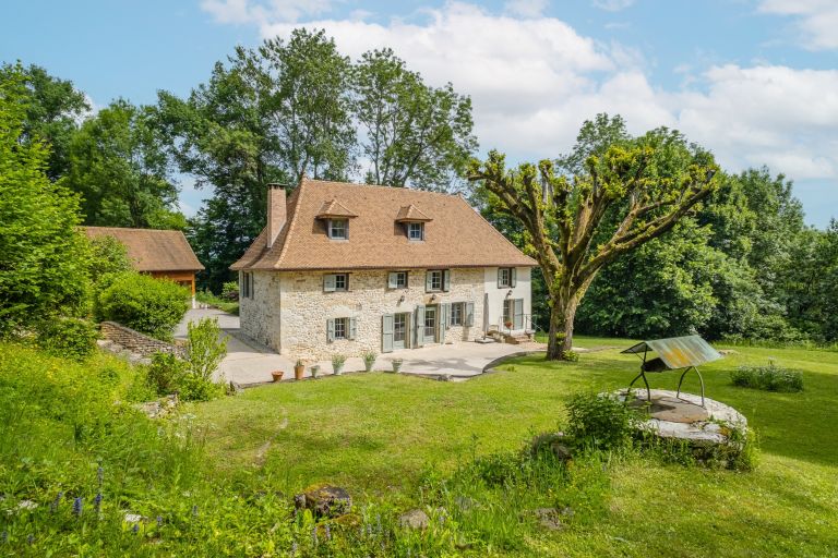 EXCLUSIVITÉ - Cette magnifique maison dauphinoise a bénéficié d'une rénovation intégrale entre 2018 et 2019. Sur 9500 m² de parcelle, la propriété est composée d'une maison principale d'env. 230 m² avec terrasse en pierre de Porcieu de 85 m² exposée sud avec vue, d'une grange avec un parking couvert pour 3 véhicules, une dépendance d'env. 65 m², d'un grand abri jardin et d'un espace piscine, exposé sud et ouest.